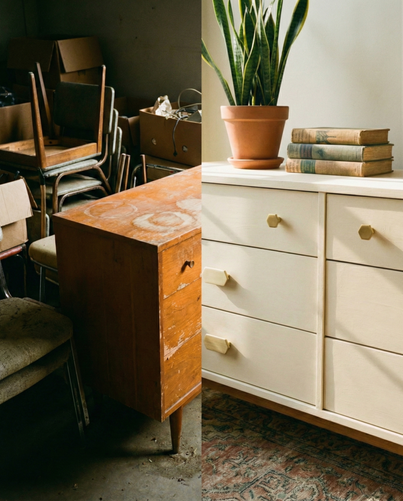 Structural integrity is non-negotiable. Wobbly legs or cracked frames require carpentry skills. Cosmetic damage—scratches, water rings, ugly colors—is just an opportunity.