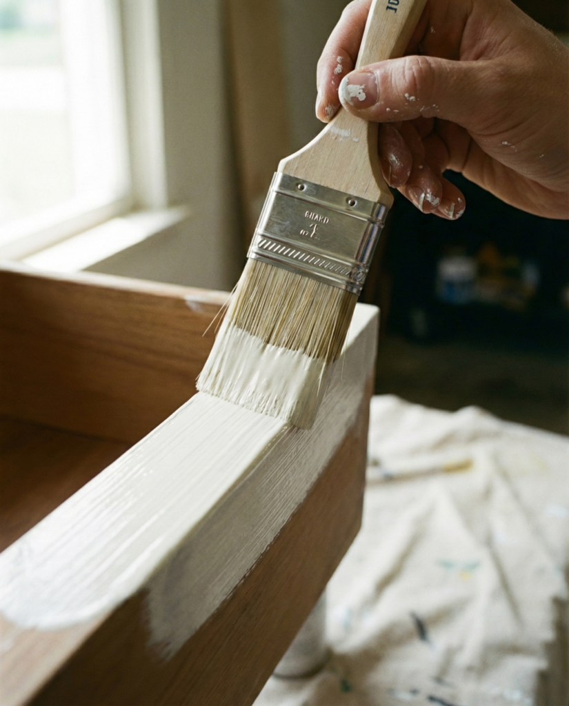 7. The Ugly Phase (Priming). Primer is not optional. It’s the glue between the old nastiness and your new color. It also blocks the old wood tannins from bleeding through and staining your white paint yellow. Roll or brush it on. It will look streaky and terrible. Do not panic. Just get coverage.