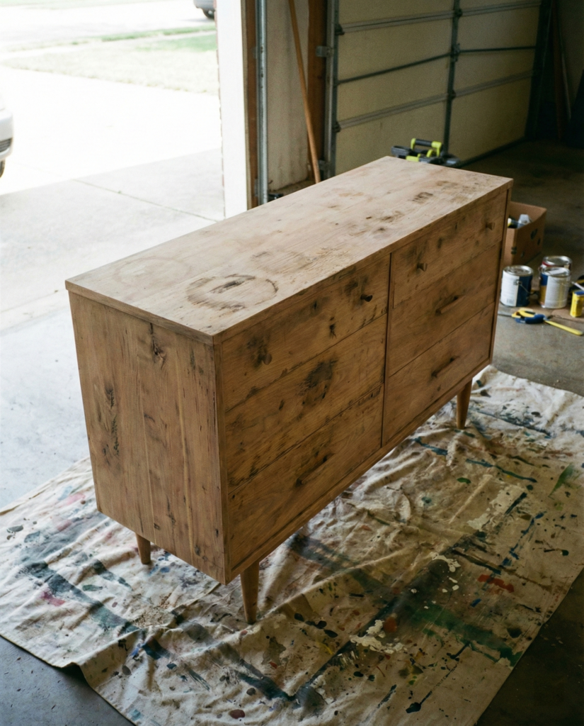 The thing was a disaster on the surface. There were scratches on the top deep enough to hide a small coin in. A spilled diffusers had eaten away a patch of varnish on the right side. It looked tired. But beneath that hideous finish was good lumber. No particle board, no cardboard backing stapled on by a machine. It was built when things were meant to last longer than a two-year lease apartment.