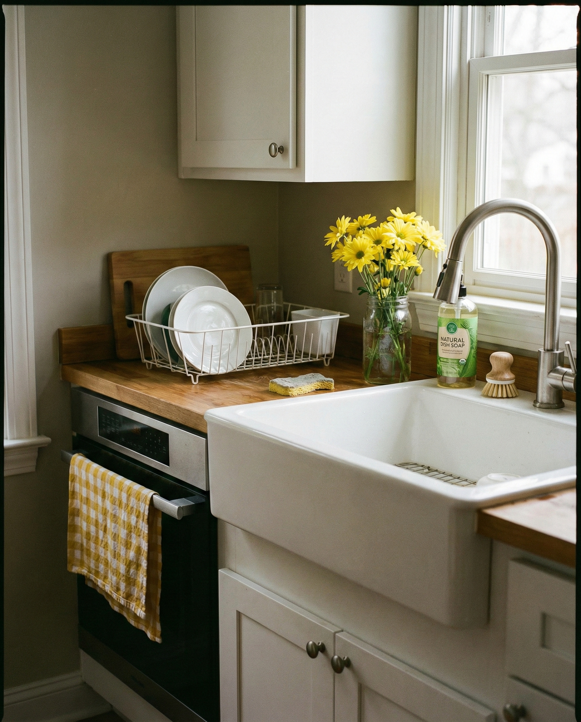 The Kitchen The kitchen is the heart of the home, so let’s make it beat a little faster. Swap out your dish towels for ones with lemon prints or bright stripes. [Link to our guide on organizing kitchen counters]. Set up your Herb Garden (Project 8) on the sill. A bowl of fresh green apples or citrus on the counter is the cheapest decor you’ll ever buy.