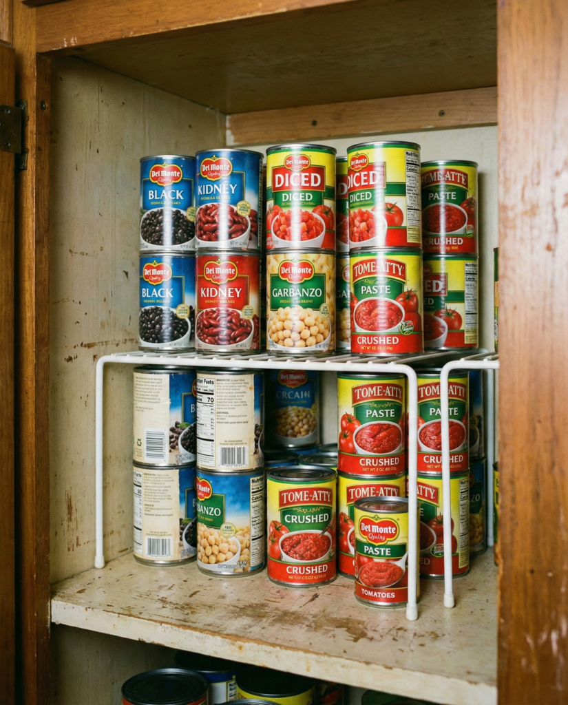 - Shelf Risers: Essential for canned goods. It turns one shelf into two, allowing you to see the labels of the back cans over the front ones.