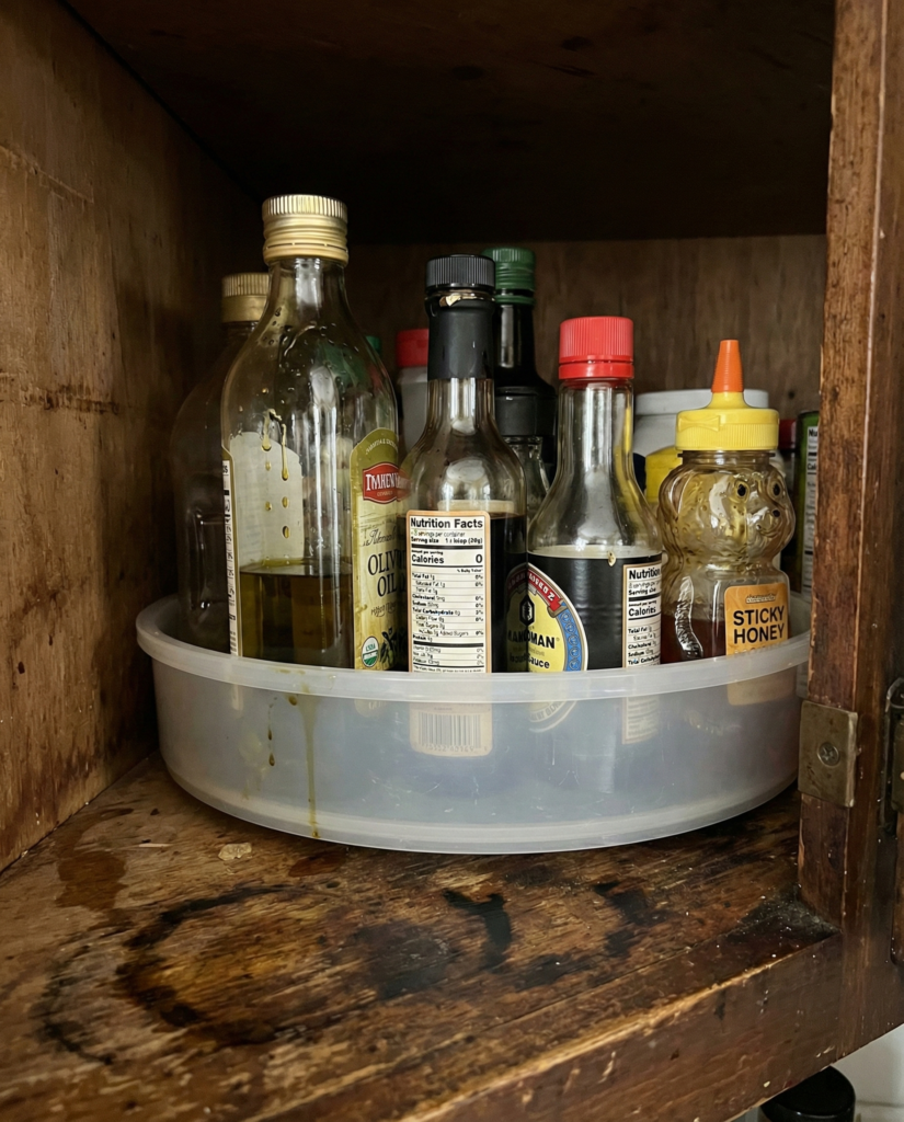 - Lazy Susans: These are the only way to handle corners. Put your oils, vinegars, and hot sauces on these. No more digging.