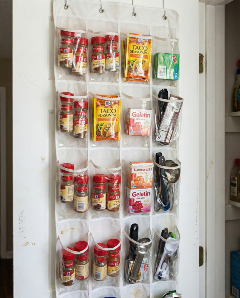 - The Door: If you have an over-the-door organizer, use it for spices and small packets. Keep the tiny things from getting lost in the deep shelves.