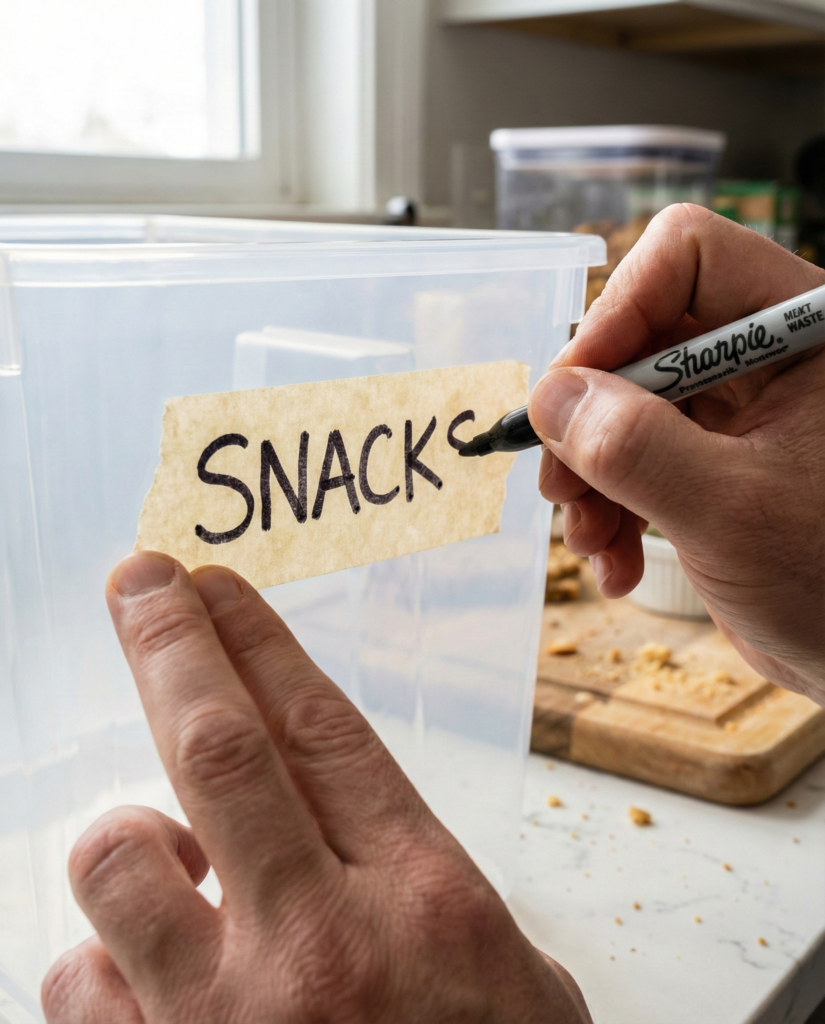 Labels are the “Keep Out” signs for chaos. If a bin is labeled “Baking,” your family is fifty percent more likely to actually put the baking soda back in it.